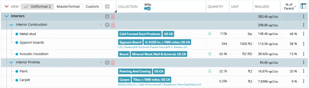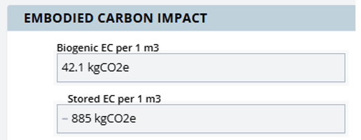When an EPD with bio-based content reports only “GWP” without specifying which definition, we have to determine whether it includes biogenic carbon or not. For products containing wood or paper, this distinction significantly affects the reported value. We sometimes need to calculate stored carbon separately using standardized methods like EN16449:2014 to enable proper comparison, for example, taking into account percent of product that is wood, moisture content, density, and other factors helping to estimate the amount of stored biogenic carbon. EC3 provides additional biogenic carbon data outside of the environmental impacts table, stored as “[emitted] biogenic embodied carbon” and “stored biogenic carbon”.
